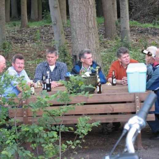 Zurück führte die Tour vorbei an der "Löns-Hütte" durch das Holdorfer Gewerbegebiet zum Naturlehrpfad an der Grandorfer Straße. Die letzte Etappe ging über zu Amtern zur Forellenhütte wo der gemütliche Abschluss bei Gegrilltem mit Bier stattfand.